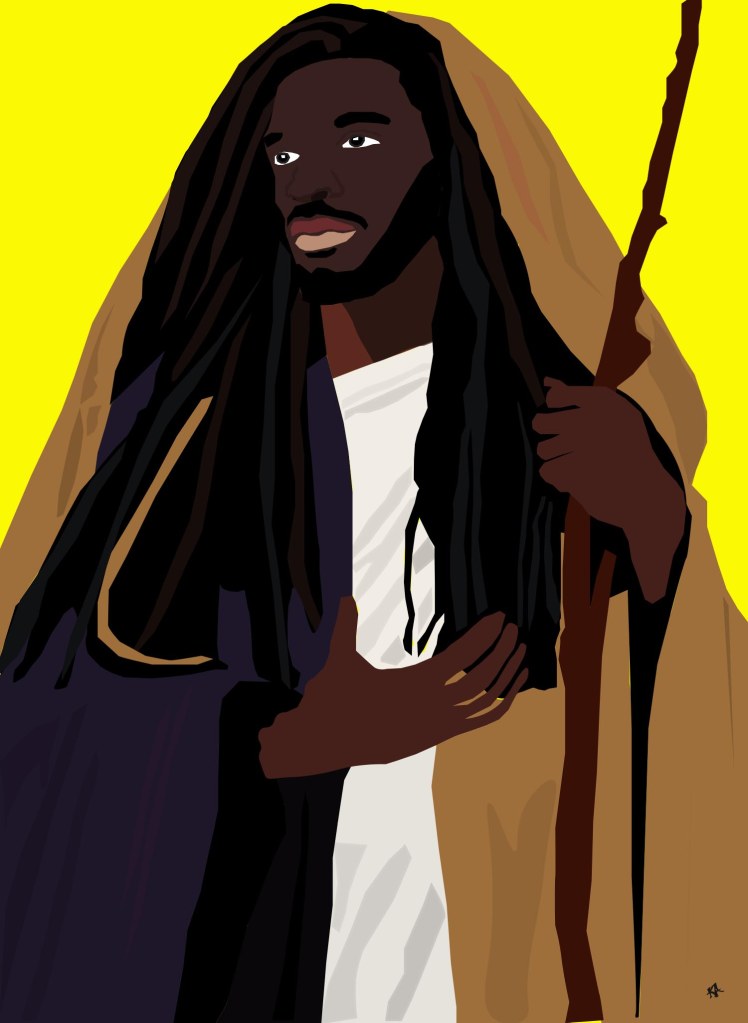 James C Lewis created amazing portraits of biblical characters with darker skin and African features. This is my drawing of his photo of Jesus.