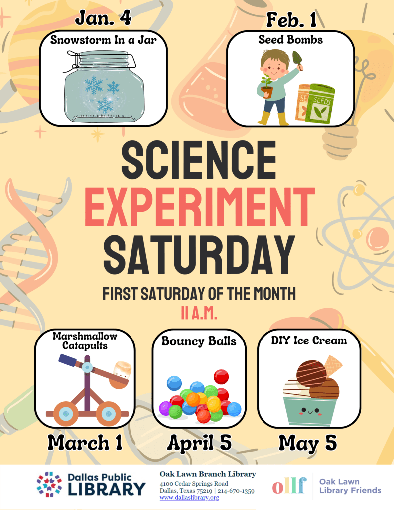 Here is a flyer for science experiments for children starting in Jan.