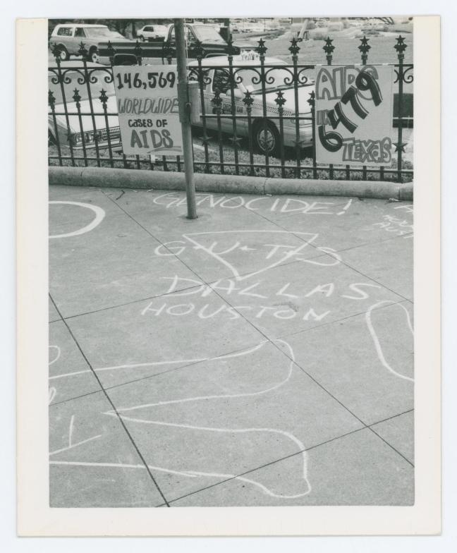GUTS, or Gay Urban Truth Squad, was a Dallas Gay Alliance project designed to create awareness of the AIDS epidemic through protests and site installations. Some of their most notable work involved drawing attention to the number of people who had died of AIDS or AIDS related illness, in Dallas, through physical representations. In one demonstration, life-size dummies were piled up in front of the Dallas County Health Department. In another, chalk outlines of bodies were drawn outside of Dallas City Hall.